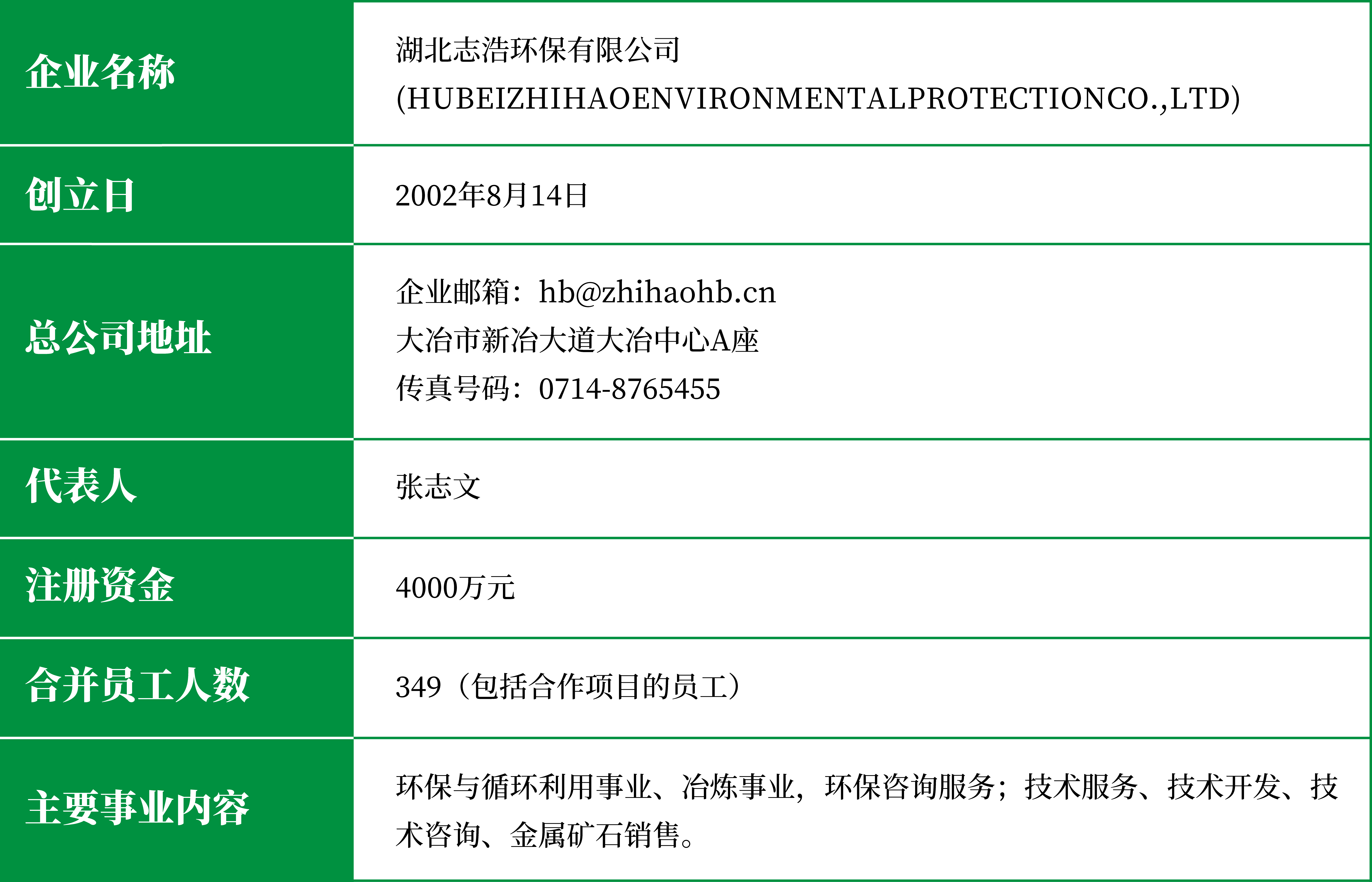 湖北志浩环保有限公司,由鼎盛铜业有限公司团队投资设立。自2005年1月鼎盛公司成立以来,20余年间始终专注于工业固废的资源化综合利用。公司自创立之始,便坚守“科技引领,创新驱动”的发展理念,深耕环保领域,积极推动可持续发展。
